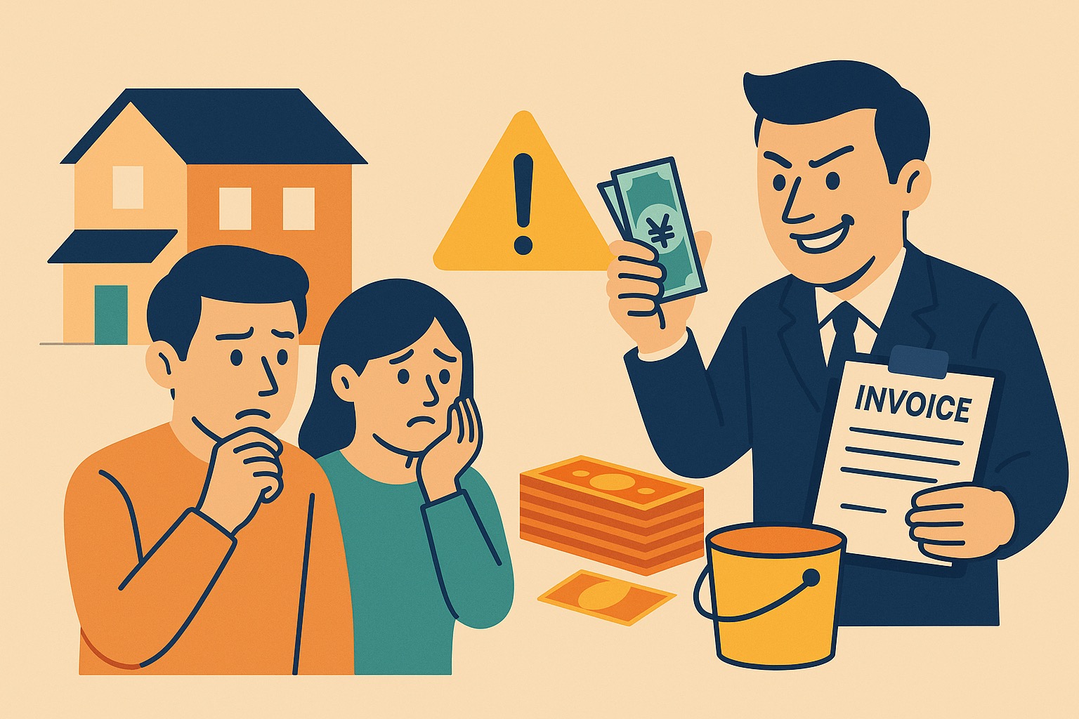 工事を途中で止められるわけにもいかず、施主は渋々支払いに応じましたが、最終的な支払い総額は当初の見積もりより大幅に膨らんでしまいました。