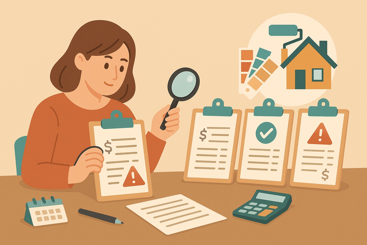 塗料の種類や使用数量、塗装箇所や面積、各工程の回数・単価、工期、金額内訳、支払い条件、保証やアフターサービスの有無、クーリングオフの記載など、重要事項が漏れなく明記されているかチェックしましょう。