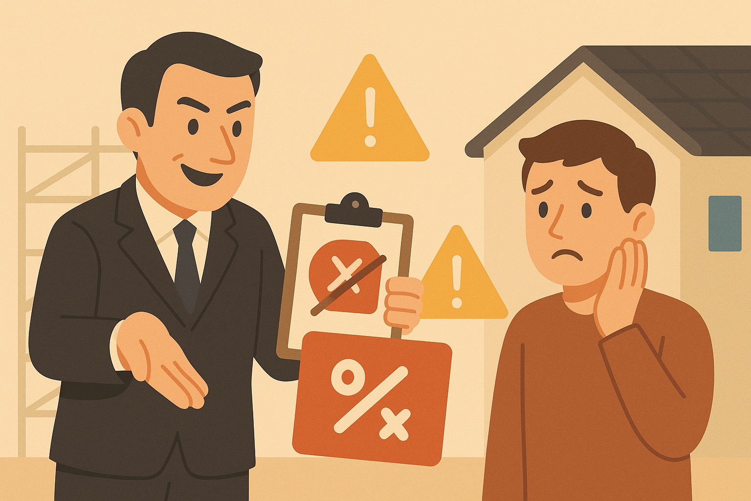 「今だけ○○万円引きします」「モニター価格で施工しますよ」といった大幅値引きの誘惑で契約を取ろうとするのも、悪徳業者の典型的な手口です。