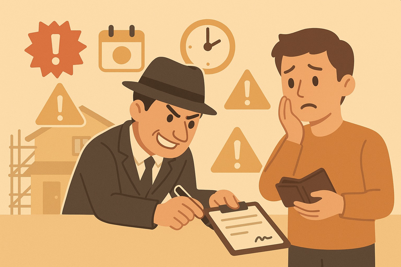 契約前に工事範囲や条件を明確に詰めておかないと、悪徳業者に付け込まれ追加請求を招く恐れがあるという教訓です。