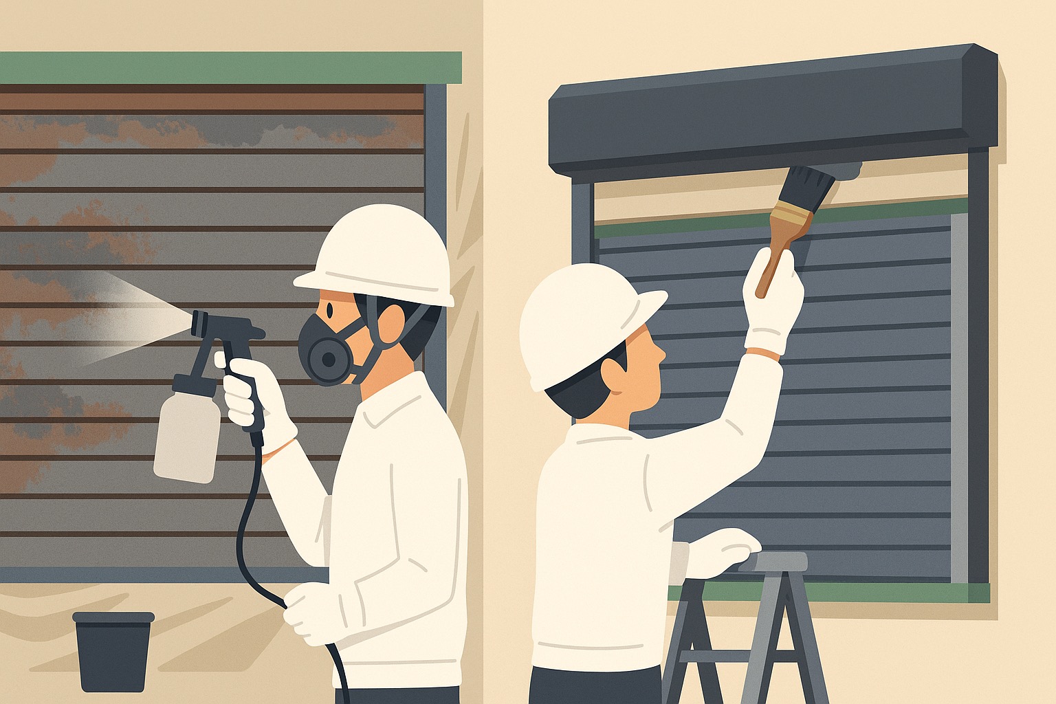 適切にケレンした後、鉄部には錆止め塗料(エポキシ系など)を下塗りし、上塗りにはウレタン系・シリコン系といった密着力・耐候性の高い塗料を使用します。
