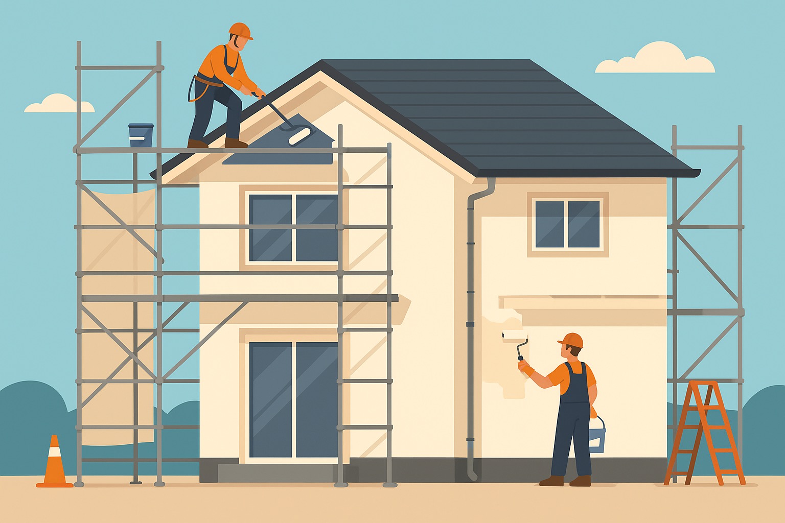- 足場費用の節約:外壁と屋根を別々に塗ると、足場設置・解体を2回行うことになり、費用負担が増えます。一緒に塗装すれば、足場は1回で済み、その分、コストダウンにつながります。