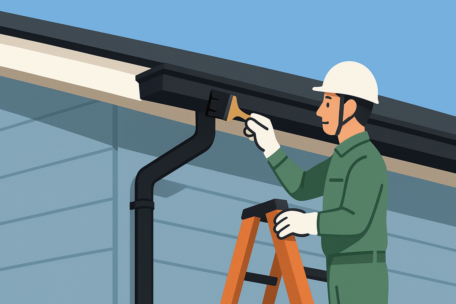 雨樋塗装には、通常、下塗りにプライマー(塩ビ用接着剤塗料)を使用し、上塗りには耐候性の高いウレタン系やシリコン系塗料を用います。