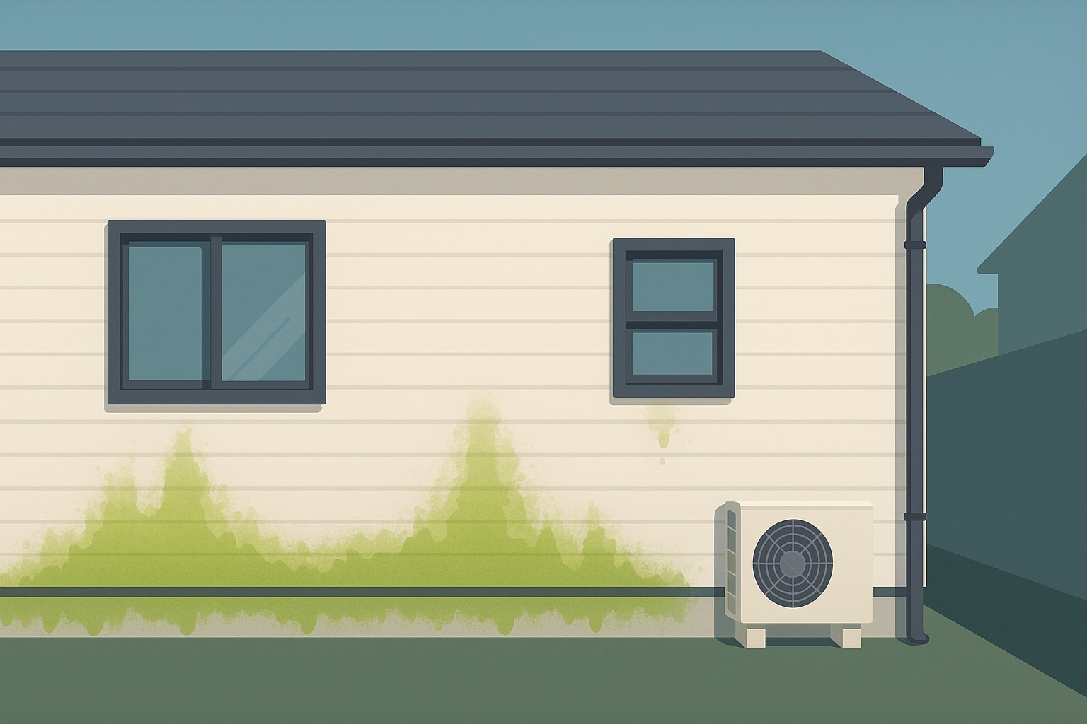 雨水や湿気がなかなか乾かないと、外壁に繁殖したコケ・藻類がどんどん広がって汚れとなります。