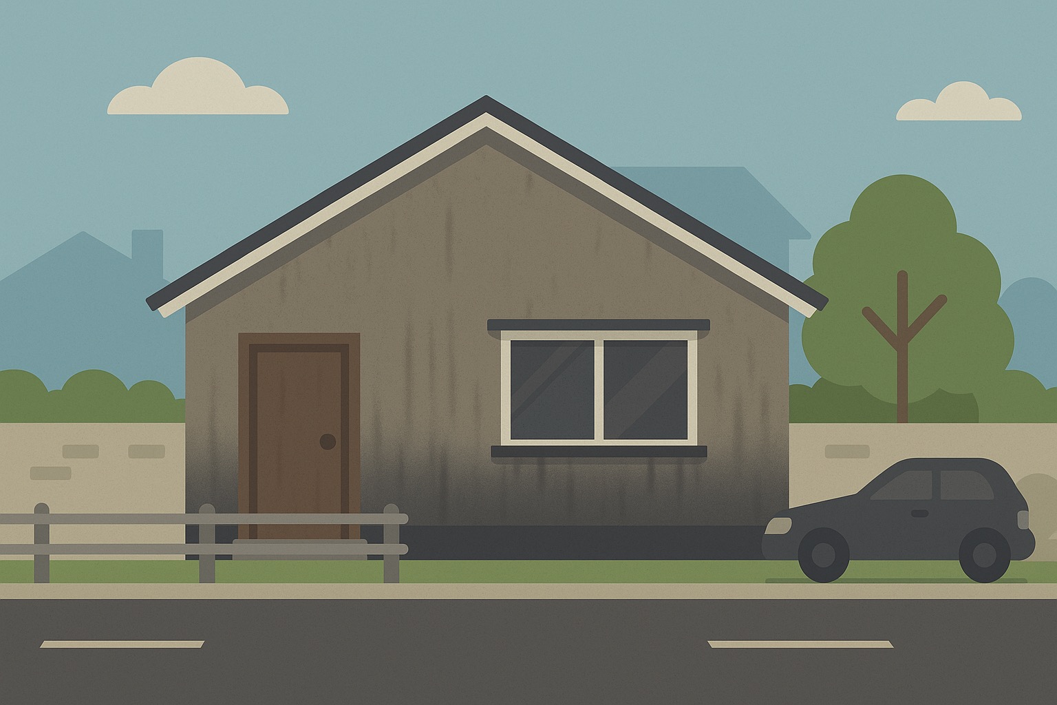 車の通りが多い道路沿いの住宅では、排気ガスや工場の煙などによる煤煙汚れが外壁に付着して、黒ずむことがあります。